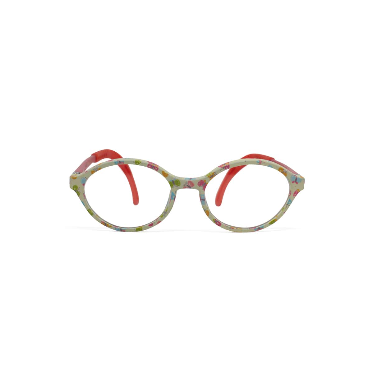Cute slender oval-shaped frames with full nylon temples. Available in green soccer pattern and butterfly pattern.